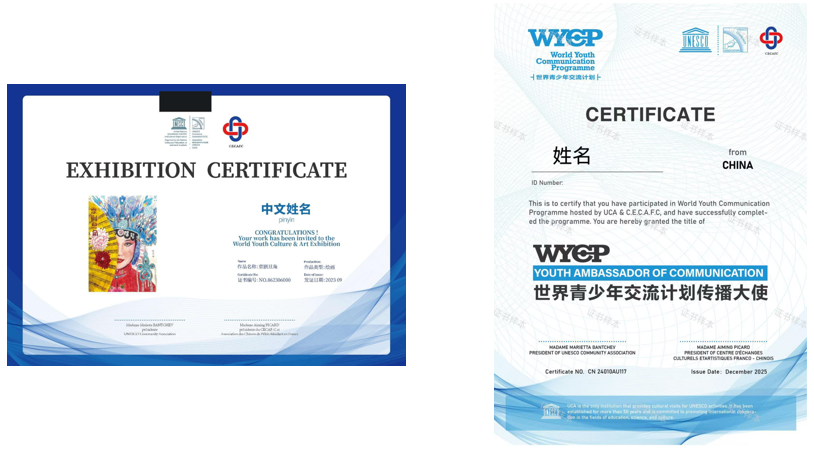 作品由国际专家进行全球评选,由联合国教科文组织直属协会 (UCA)、法中文化艺术交流中心颁发。