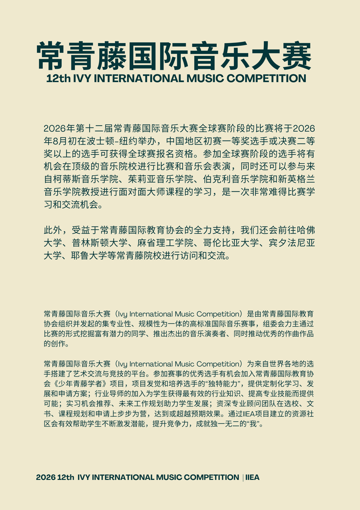 第十二届常青藤国际音乐大赛 l 全球赛