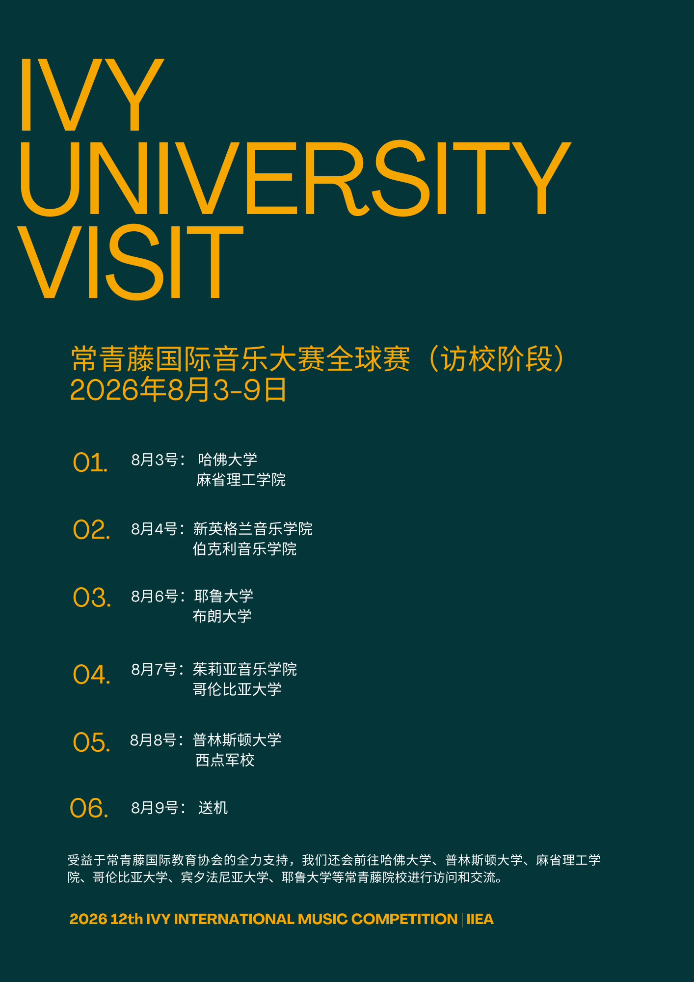 全球赛访校(含四天吃住行)访校:2280 USD/人