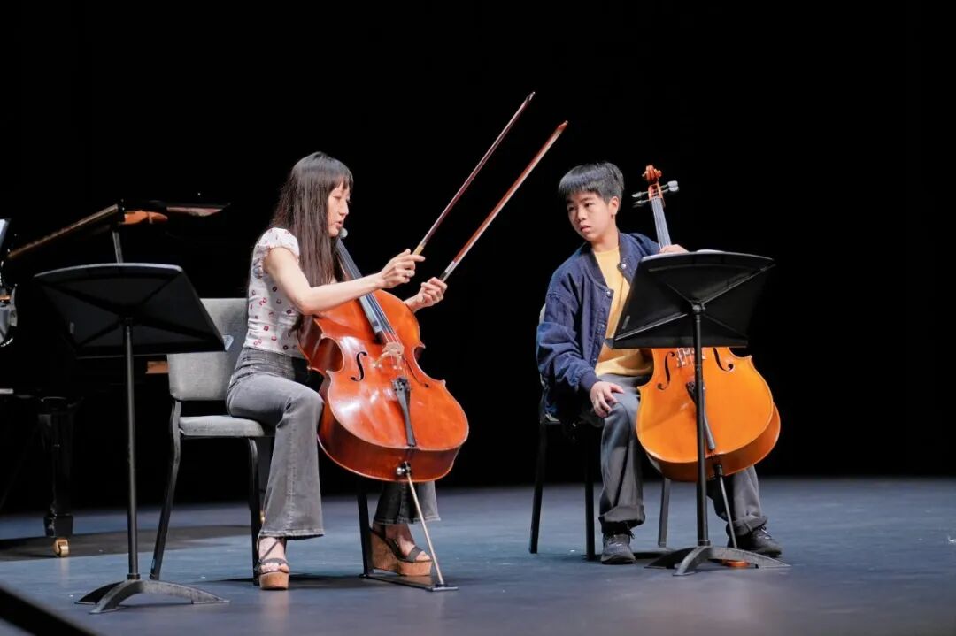 The cello masterclass was led by Principal Xiaomu Fang, who taught details such as the use of the little finger for vibrato, phrase shaping, and bowing force.